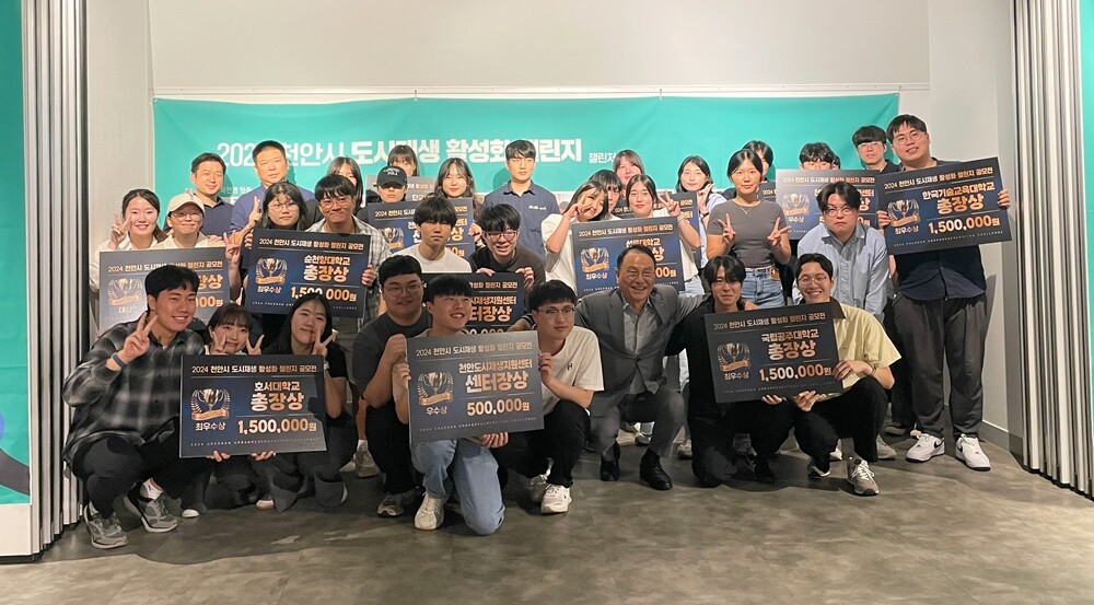 [대학저널 온종림 기자] 한국기술교육대학교 LINC 3.0 사업단이 지난 8월 30일 천안시 도시재생지원센터와 충남지역 6개 대학 LINC 3.0 사업단이 주관한 ‘2024 천안시 도시재생 활성화 챌린지’ 결과발표회에서 2팀이 최우수상(대학총장상)을 수상했다고 밝혔다.