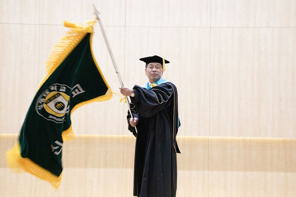 교기를 흔드는 서명범 신성대 제6대 총장. 사진=신성대 제공 |