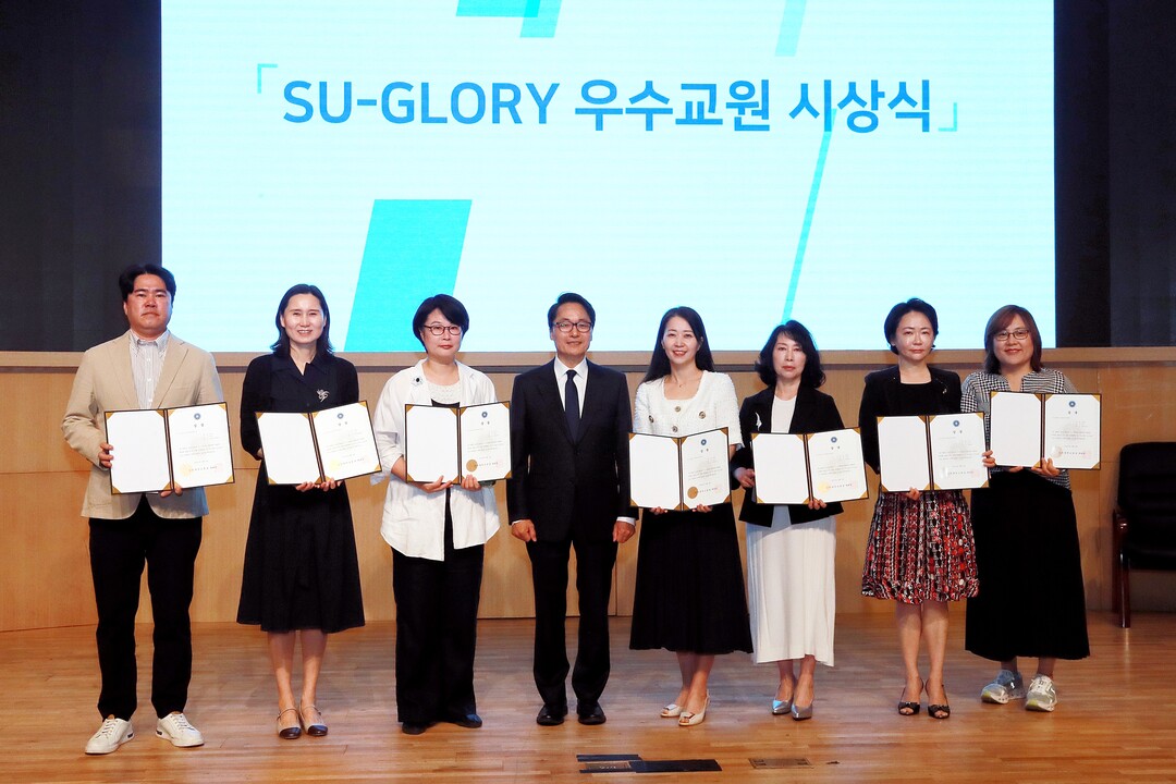 SU-GLORY 우수교원은 관련 세칙에 따라 전임교원을 대상으로 1년에 한 번 심사가 이뤄진다. 교육, 연구, 산학협력, 봉사 영역에 대해 평가한 결과를 교원인사위원회에서 추천하고, 총장이 최종 승인해 선정한다. 올해(2023학년도 실적 기준)에는 교육 5명, 연구 1명, 봉사 1명 등 총 7명의 교원이 포상을 받게 됐다.