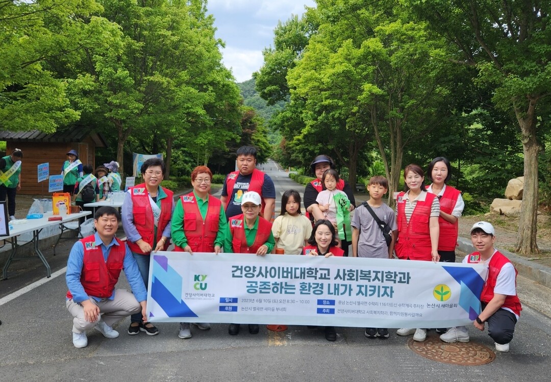 [대학저널 온종림 기자] 건양사이버대학교 사회복지학과가 지난 10일, 논산시 벌곡면 수락계곡에서 깨끗한 자연환경을 만들기 위한 캠페인 활동을 진행했다.