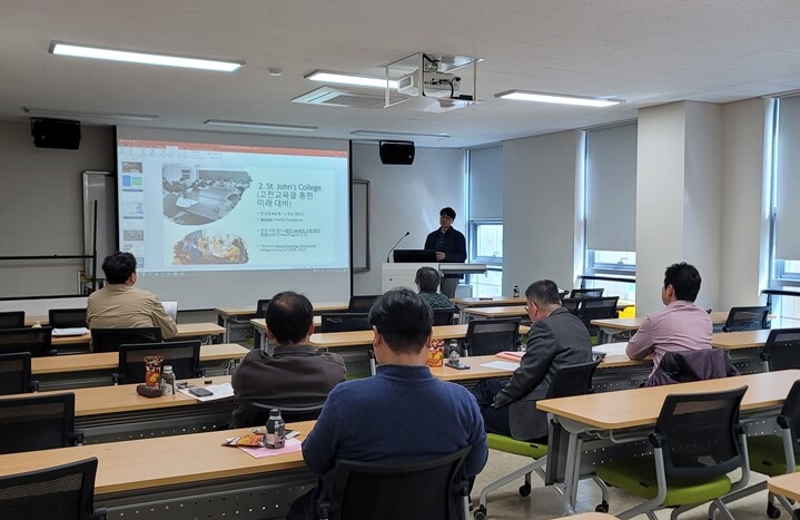 워크샵에서는 이용화 인천대 교수가 ‘학습자 중심의 토의식 GB(Great Books)수업 방안’을 주제로 특강을 진행했다.