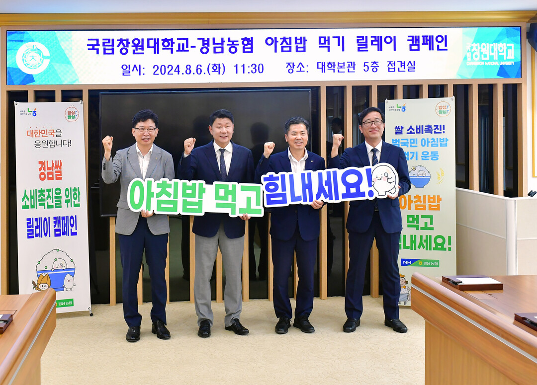[대학저널 이선용 기자] 박민원 총장은 아침밥 먹기 붐 조성과 경남 쌀 소비 촉진을 위한 '아침밥 먹기 운동 캠페인'에 경남농협 조근수 본부장과 동참했다.