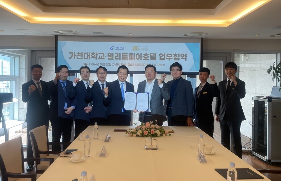 가천대와 밀리토피아호텔이 20일 업무협약을 체결했다. 사진=가천대 제공 |