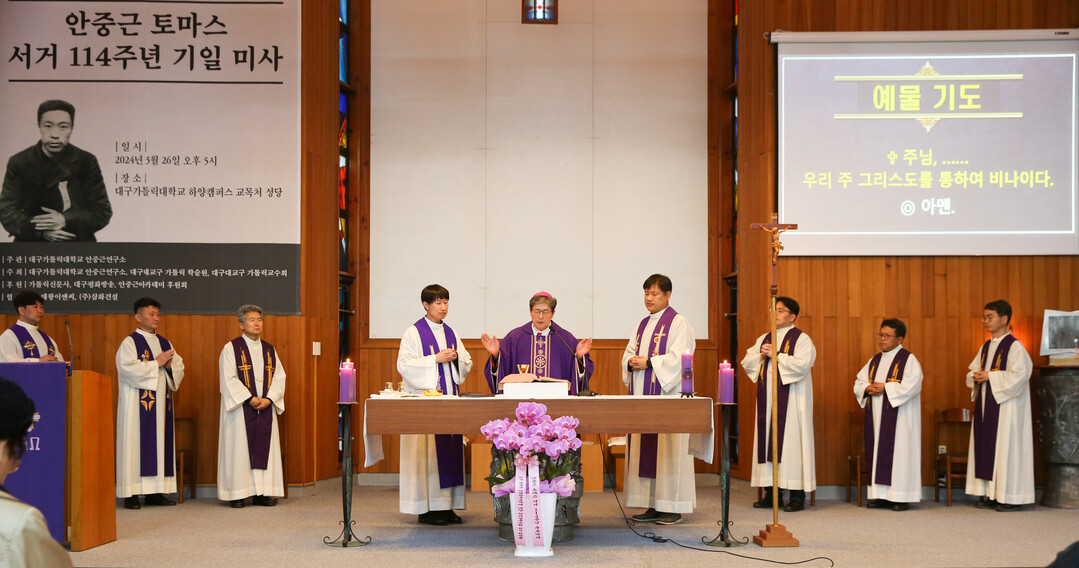 [대학저널 이선용 기자] 대구가톨릭대학교는 3월 26일 교내 교목처 성당에서 안중근(토마스) 의사 순국 114주기 추모미사를 봉헌했다.