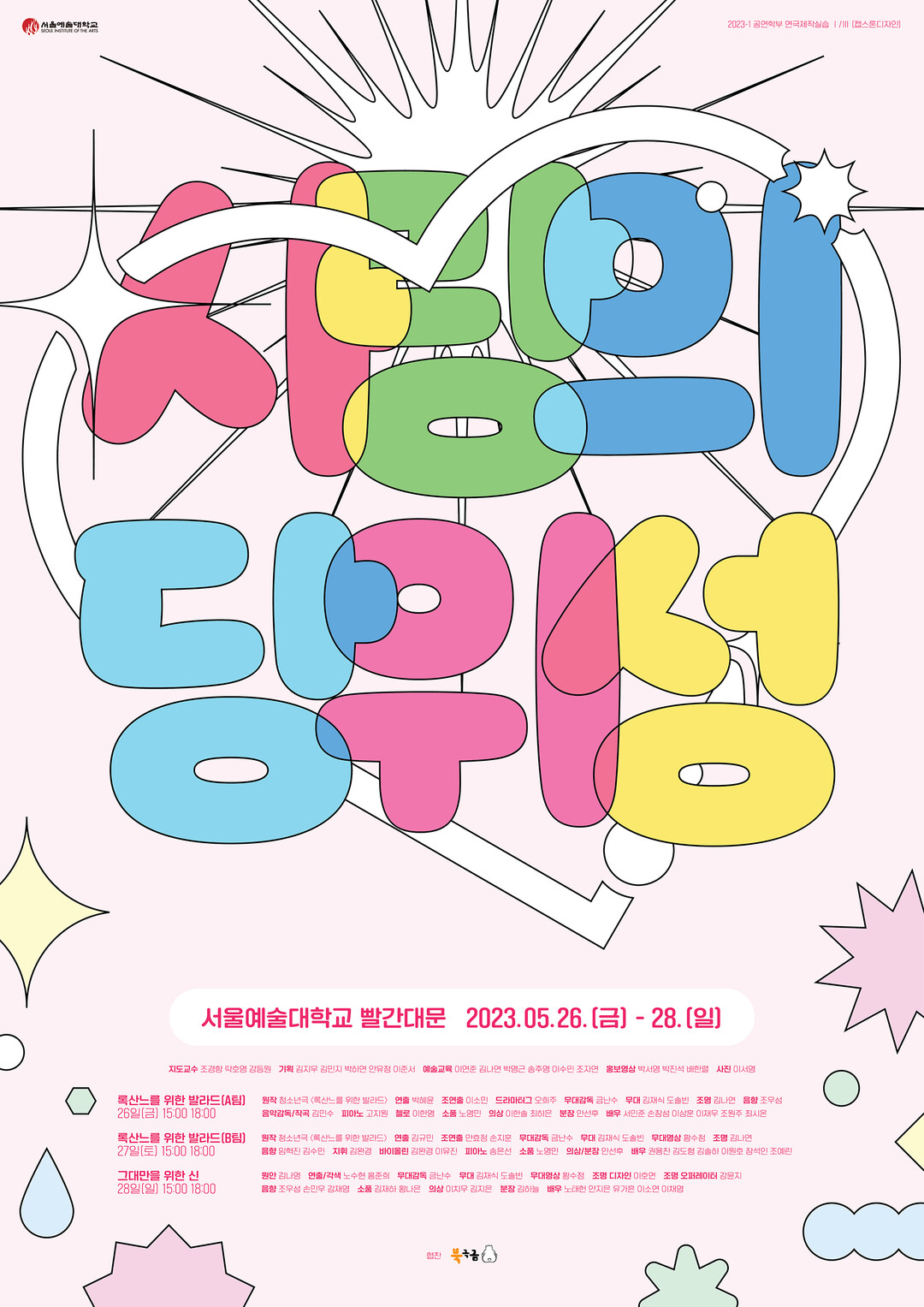 25일 서울예대에 따르면 26~28일 빨간대문에서 공연하는 아동청소년극LAB 사랑의 당위성은 원작 에드몽 로스탕의 시라노 드 베르주라크, 각색 김태형의 연극 록산느를 위한 발라드와 창작극 그대만을 위한 신 등 두 작품을 6회에 걸쳐 공연한다.