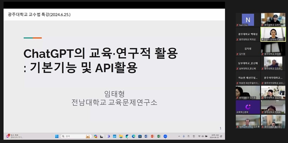 [대학저널 이선용 기자] 광주대학교 교육혁신연구원은 지난 6월 25일 ‘제2회 전남대 교육문제 연구소와 함께 하는 지역교육공동체 대학 교직원을 위한 디지털 아카데미’에 참여했다고 27일 밝혔다.
