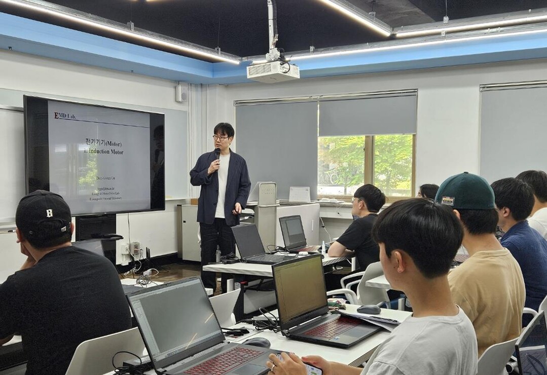 이번 교류모터 시뮬레이션 교육은 구본관 경북대 교수가 맡았으며 ▲유도전동기의 구성 ▲유도전동기의 회전자계 및 동작원리 ▲유도전동기의 등가회로 및 특성 ▲PSIM 시뮬레이션을 통한 특성 시뮬레이션 ▲PWM과 인버터 ▲C언어 기반의 임베디드 시스템 구성 원리 ▲임베디드 기반 유도전동기 VVVF 제어 시뮬레이션 실습 강의로 등을 교육했다.