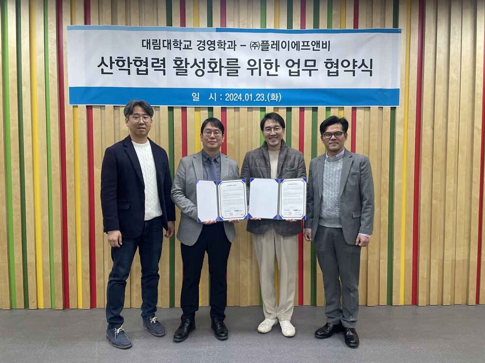 [대학저널 온종림 기자] 대림대학교 경영학과(학과장 주태욱)가 Food & Beverage 사업을 영위하는 ㈜플레이에프앤비(대표이사 정보람)과 지난 23일 산학협력 활성화를 위한 협약을 체결했다.