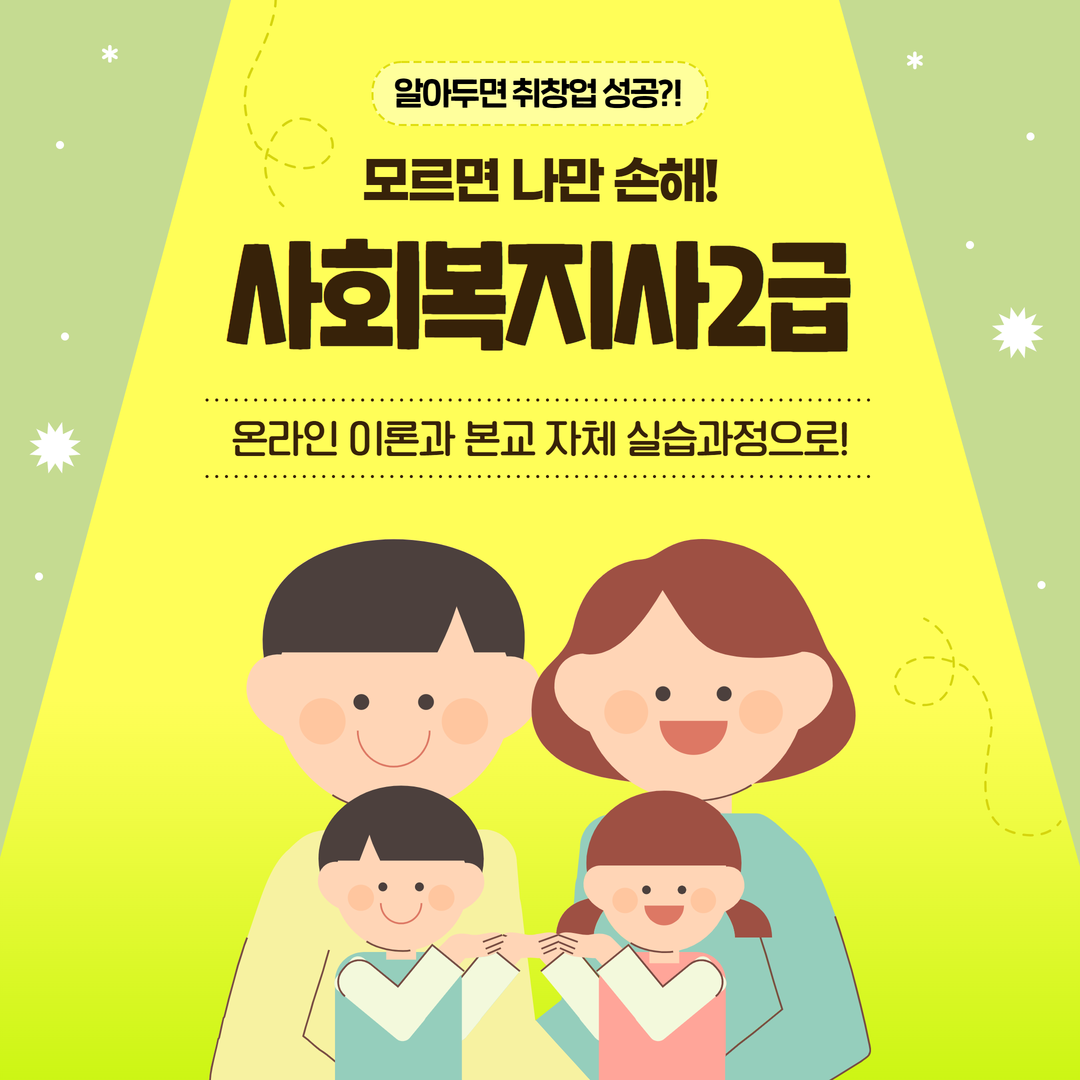 사회복지사 2급은 다양한 연령층의 사람들에게 취업의 기회를 제공한다. 비전공자, 고졸자 등 대학에서 사회복지를 전공하지 않았더라도 사회복지사 2급 자격증 취득이 가능하다.