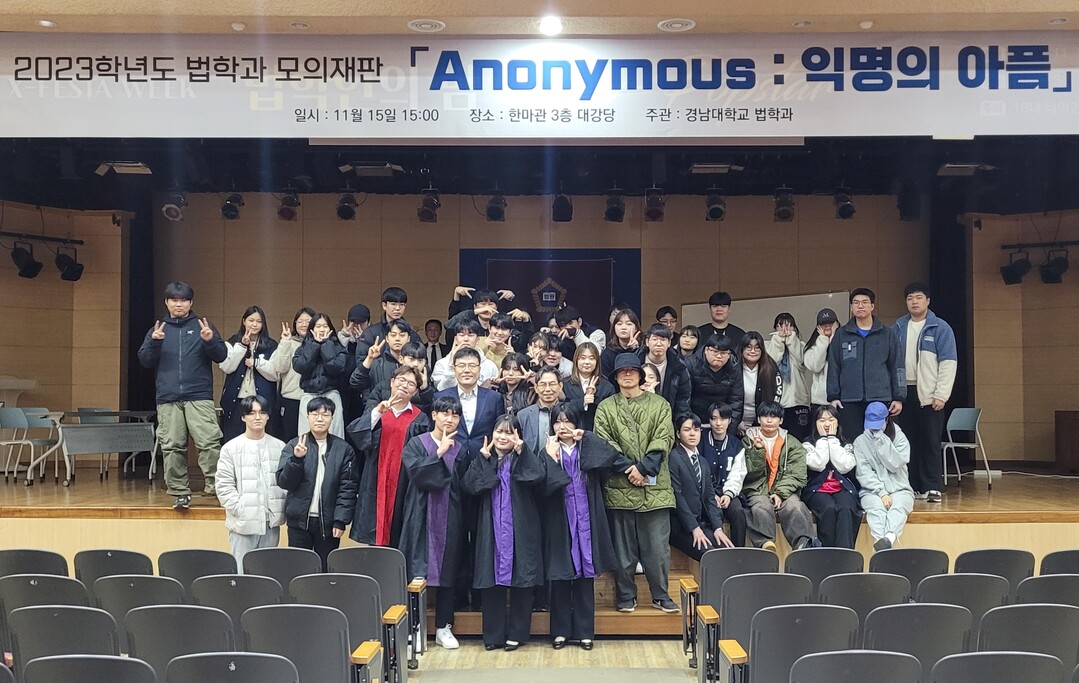 [대학저널 이선용 기자] 경남대학교 법학과가 지난 15일 오후 3시 한마관 대강당에서 ‘2023학년도 교내 형사 모의법정 및 법학인의 밤’ 행사를 개최했다.