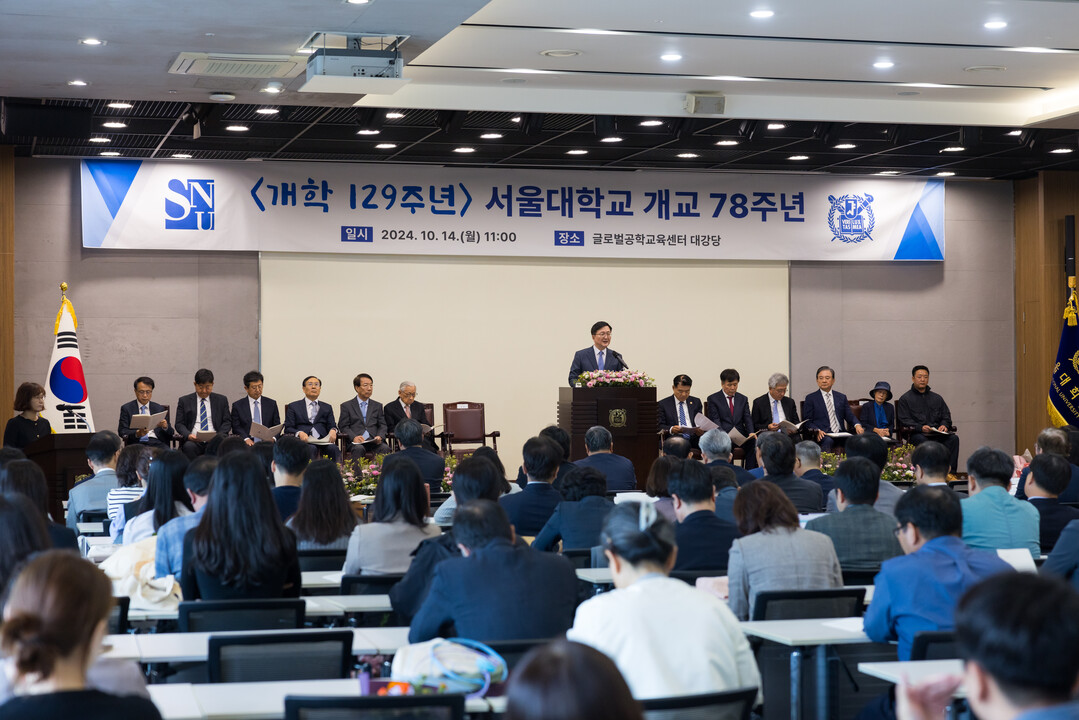 유홍림 총장은 기념식에서 “변화의 중심에서 새로운 기회와 가치를 창출할 비전을 제시하는 일, 그 과정이 비록 힘들더라도 흔들림 없이 굳건히 앞장서 나아가는 것이 서울대의 소명”임을 제시하며 “우리 사회를 밝히는 집단지성의 산실로 서울대의 위상을 한층 강화하기 위해 모든 구성원과 국민의 목소리를 경청하고, 설득과 조정을 위한 노력을 멈추지 않을 것”이라고 강조했다.