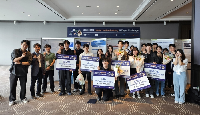 지난 16일 한국통신학회가 주최한 ‘ICTC 2024’ 국제 콘퍼런스에서 ETRI는 경진대회 참가 논문 발표 세션을 열어 참가자들의 연구 결과를 공유했다. 이어진 시상식에서는 대상 수상자를 포함해 7개 우수팀에게 시상했다.