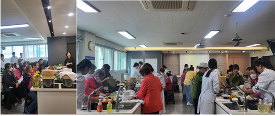 식품영양학과 재학생들이 메뉴개발전 문가의 자문을 통해 고령친화 메뉴를 선정헸고, 학내 구축된 공유주방에서 중랑구 ‘구립용마경로복지센터’ 어르신들과 학생들이 한 팀을 이뤄 함께 소통하며 음식을 만들어가는 세대공감 쿠킹클래스로 진행되었다.