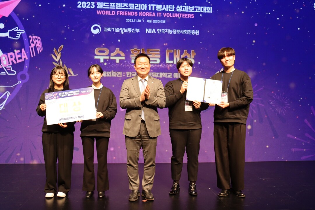 [대학저널 온종림 기자] 한국기술교육대학교 학생들이 30일 서울 성암 아트센터에서 열린 ‘2023년 WFK(월드프렌즈코리아) IT봉사단 성과보고회’에서 대상인 과학기술정보통신부 장관상을 수상했다.