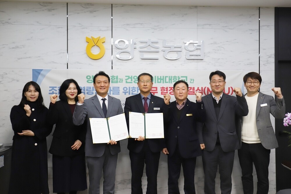 이날 협약식에는 대학 최동연 교육혁신처장, 김지운 학생지원처장, 이진경 입학홍보처장이 참석했고, 양촌농협 김기범 조합장, 권기용 상임이사, 김현수 상무, 박연배 팀장이 참석했다.