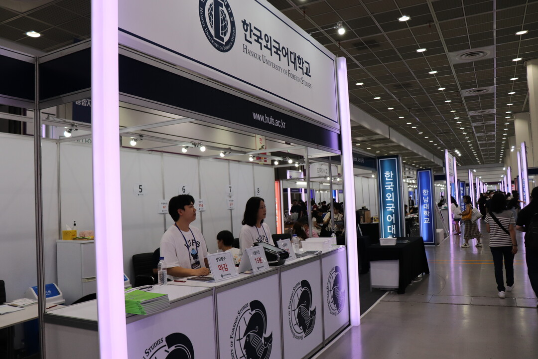 [대학저널 조영훈 기자] 한국대학교육협의회가 주최하는 '2024학년도 수시 입학정보박람회'가 20일 서울 삼성동 코엑스에서 개막됐다. 22일까지 열리는 수시박람회에는 전국 146개 대학이 참가하고 있다. 현재 수험생들이 대학부스에서 입시 상담을 진행하고 있다. 사진은 한국외국어대학교 상담부스 모습.