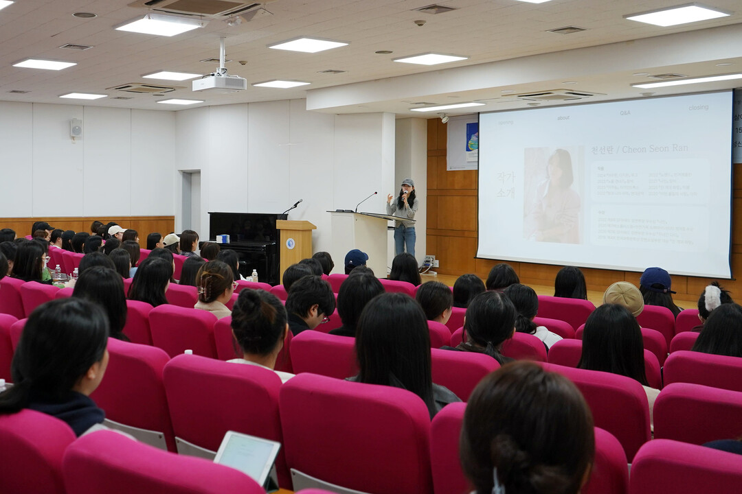 [대학저널 이선용 기자] 성신여자대학교는 11월 12일 돈암수정캠퍼스에서 한국 SF 문학의 대표적인 작가인 천선란 소설가를 초청하여 ‘지역주민과 함께하는 저자와의 만남’ 행사를 개최했다고 14일 밝혔다.