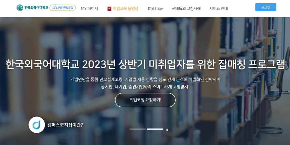 한국외대 대학일자리플러스본부 진로취업지원센터는 졸업생들과 지역 청년들이 취업역량을 강화할 수 있도록 맞춤형 프로그램을 제공하여 성공 취업을 지원하고 있다. 코로나19로 중단되었다가 2022년 하반기 재개되었고, 지금까지 총 90명이 참가하여, 40%에 가까운 취업률의 성과를 달성하고 있다.