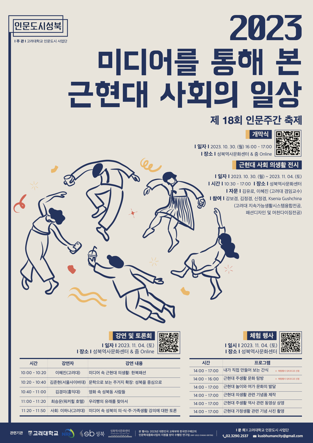 이번 행사는 교육부와 한국연구재단의 후원으로 실시하는 ‘제18회 2023 인문주간: 인문학, 인류의 미래를 상상하다’의 일환이다. 성북 전통사회의 일상을 의, 식, 주와 아동가족 생활을 주제로 30일부터 11월 4일까지 다양한 프로그램을 진행한다.