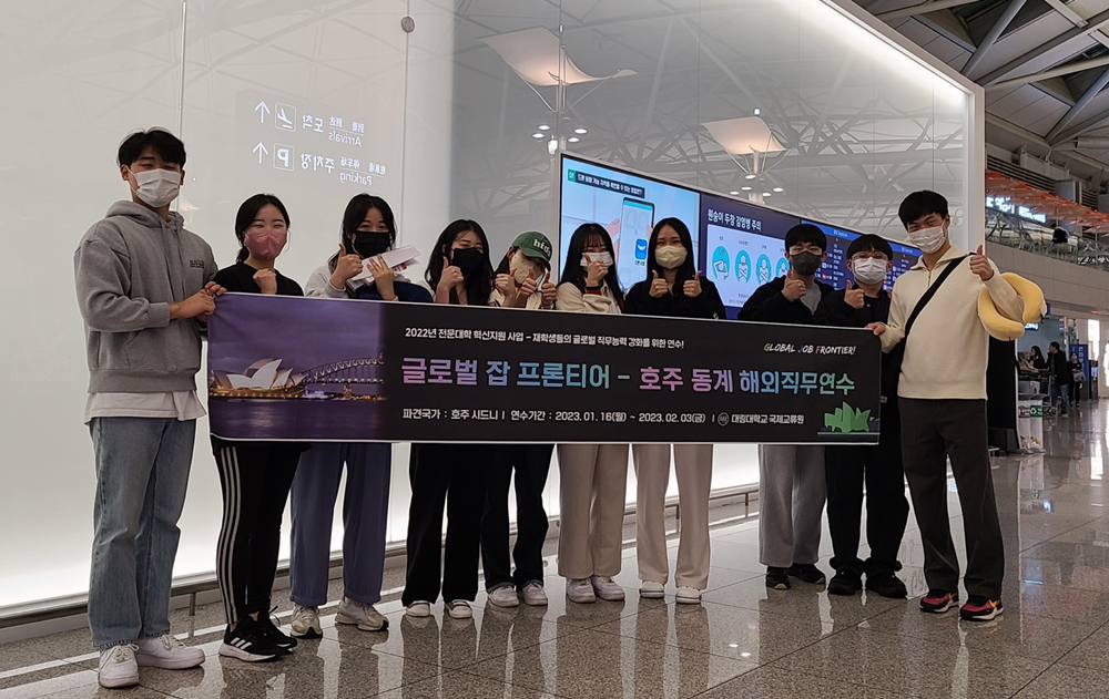 11일 출국한 2022년 전문대학 혁신지원사업 산학연계형 해외직무연수에 참여하는 10명은 호주 ECA에서 3주간 직무어학 및 해외취업교육, 글로벌 기업 관계자 특강, 해외기업 체험 활동 등 해외취업 연계 인턴십 프로그램을 이수한다.