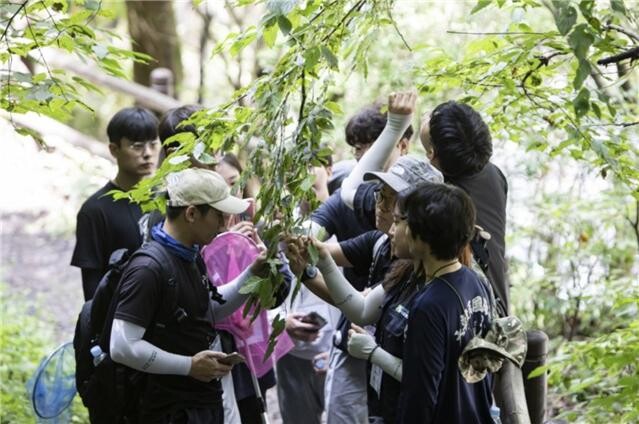 국립안동대 학생들이 수목의 병해충 진단 실습 교육을 받는 모습. 사진=국립안동대 제공 |