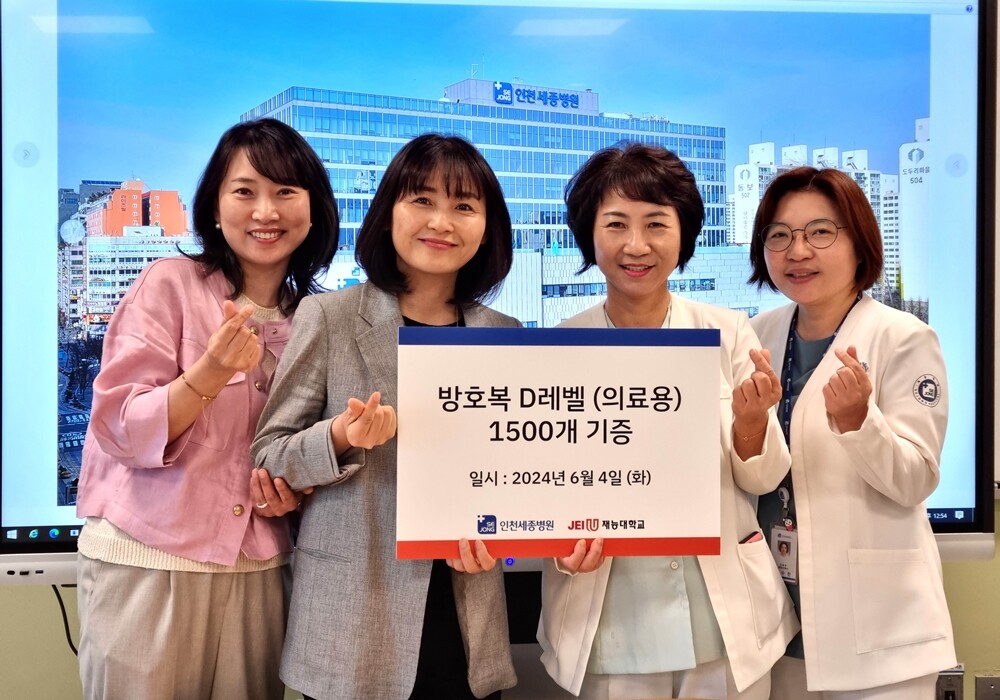 [대학저널 온종림 기자] 재능대학교가 4일 인천세종병원으로부터 의료용 방호복 D레벨 1500개와 고글을 기증받았다.