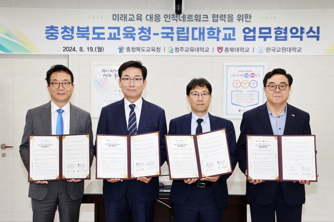 [대학저널 이선용 기자] 충북대학교가 미래교육 대응 인적네트워크 협력을 위해 충청북도교육청과 8월 19일 오전 11시 30분 충북교육청 본관 2층 회의실에서 업무협약을 체결했다.