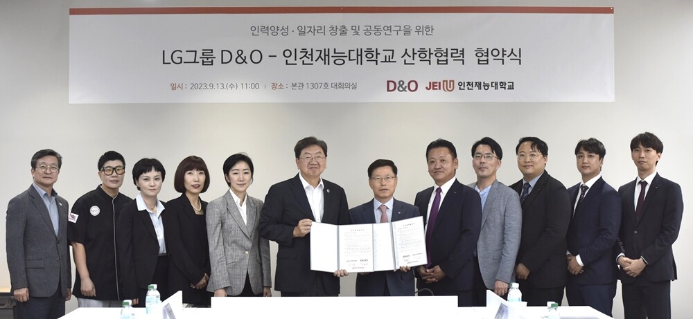 [대학저널 온종림 기자] 인천재능대학교 호텔외식조리과·호텔관광과‧항공서비스과가 LG그룹 D&O와 인재양성 및 일자리 창출, 공동연구 협력을 위한 산학협력 협약을 13일 체결했다.