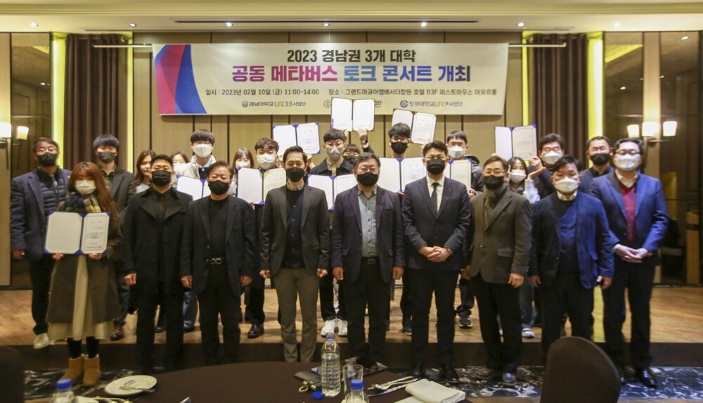 [대학저널 온종림 기자] 경남대학교 LINC3.0사업단이 지난 10일 그랜드 머큐어 앰배서더 창원호텔 아모르룸에서 경남권 3개 대학과 ‘메타버스 토크콘서트’를 개최했다.