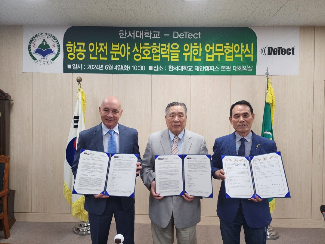 이날 체결된 DeTect사와 업무협약의 주요 내용은 ▲항공기 조류충돌(Birdstrike) 회피 레이더 및 드론 탐지 레이더를 한서대학교 태안 비행장 활주로에서 테스트하고 평가 ▲활주로 공역 주변의 항공기를 대상으로 태안 비행장의 조류 충돌 위험을 분석하고 드론 탐지 장치로 테스트 ▲테스트와 데이터 수집 및 시연 목적으로 시스템을 정해진 기간 동안 한서대학교에 무료 제공 등이다.