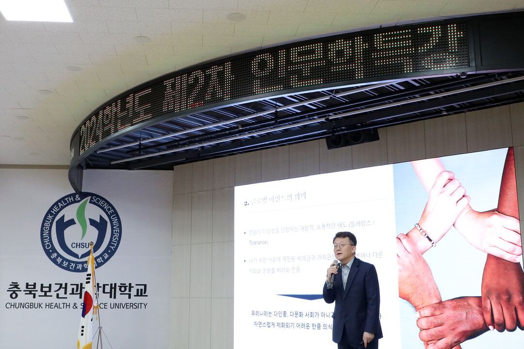 [대학저널 이선용 기자] 충북보건과학대학교 교수학습지원센터가 3일 합동강의실에서 재학생 500여 명을 대상으로 오송 전 포루투칼 대사의 후마니타스 인문학 특강을 진행했다.