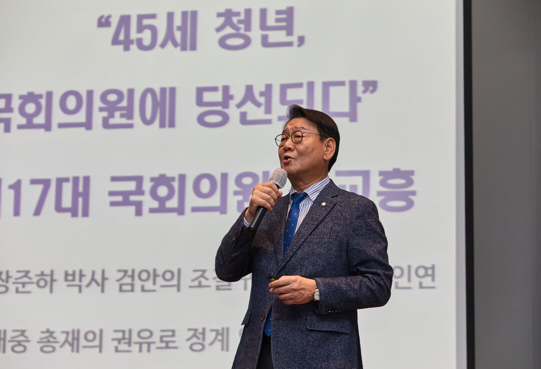 김교흥 국회의원은 이날 ‘밀알은 반드시 쓰인다’를 주제로 ‘CEO와 기업가 정신’ 강연을 펼쳤다.