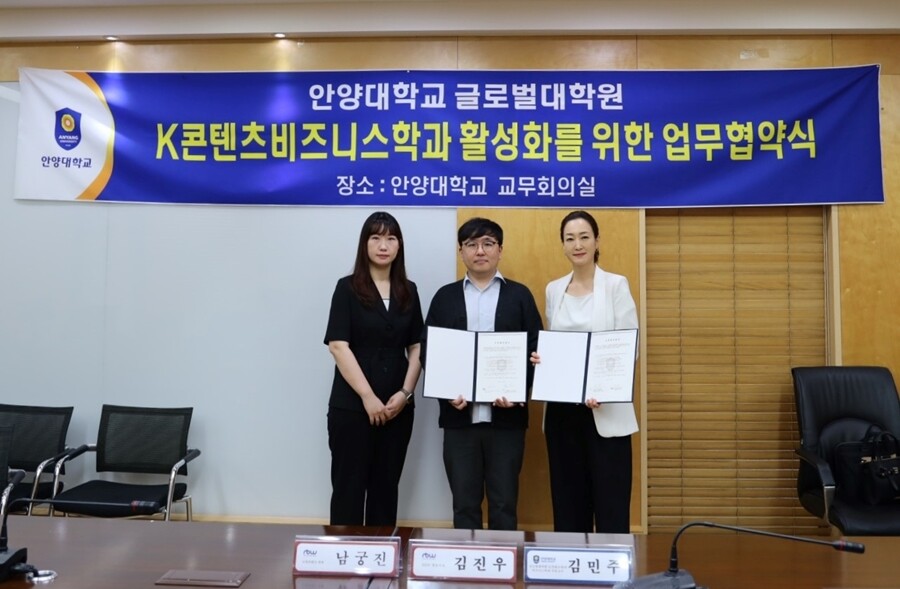 [대학저널 온종림 기자] 안양대학교 글로벌대학원 K콘텐츠비즈니스학과가 글로벌 콘텐츠 제작사 RBW와 K콘텐츠 교육을 위한 산학협력 업무협약을 체결했다.