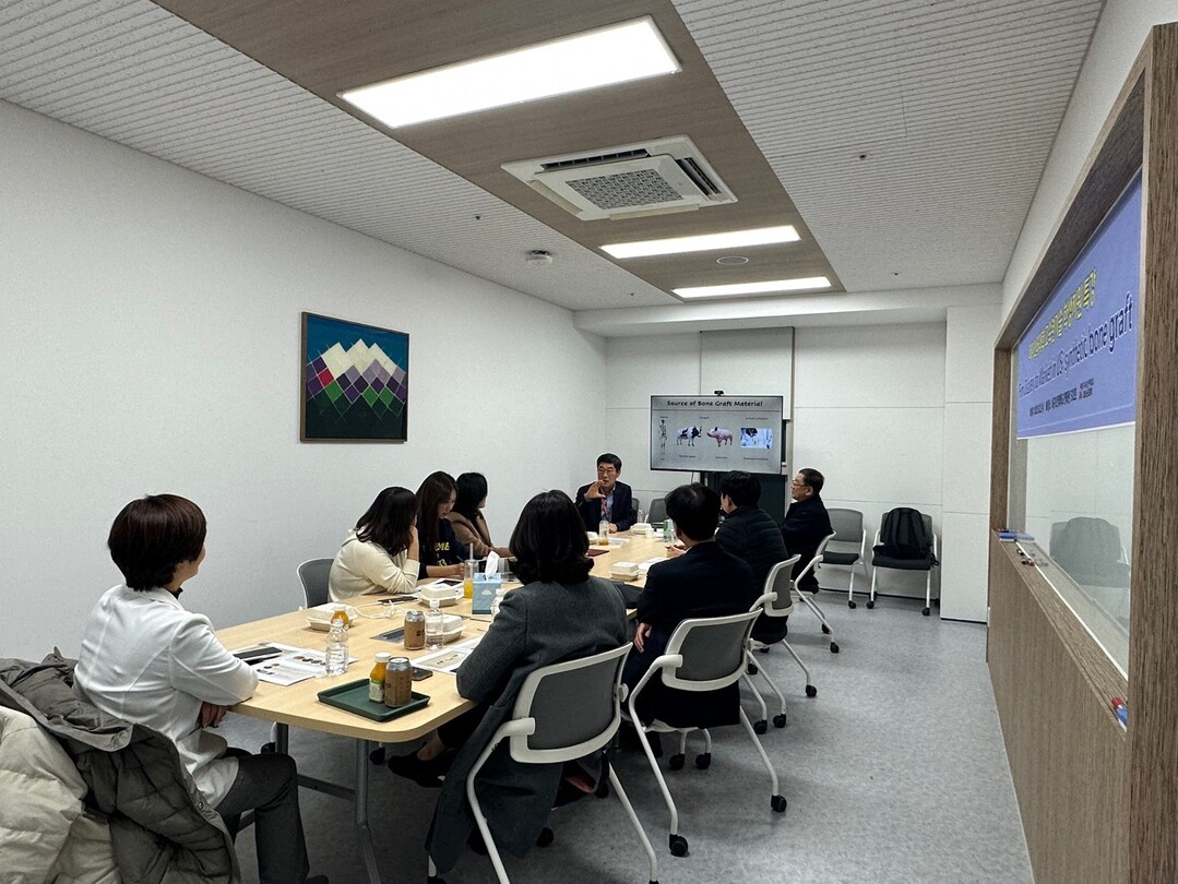이날 참석한 석사과정 학생들은 치과용 합성 뼈 이식재로 적용되는 임플란트와 악안면보철에 적용되는 합성 뼈(synthetic bone)에 관해 큰 관심을 보였다.