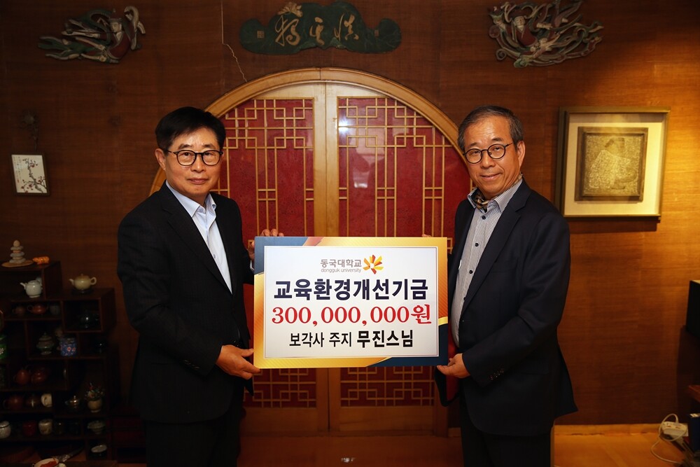 [대학저널 온종림 기자] 서울 종로 보각사 주지 무진 스님이 7일 동국대학교에 3억 원을 기부했다.