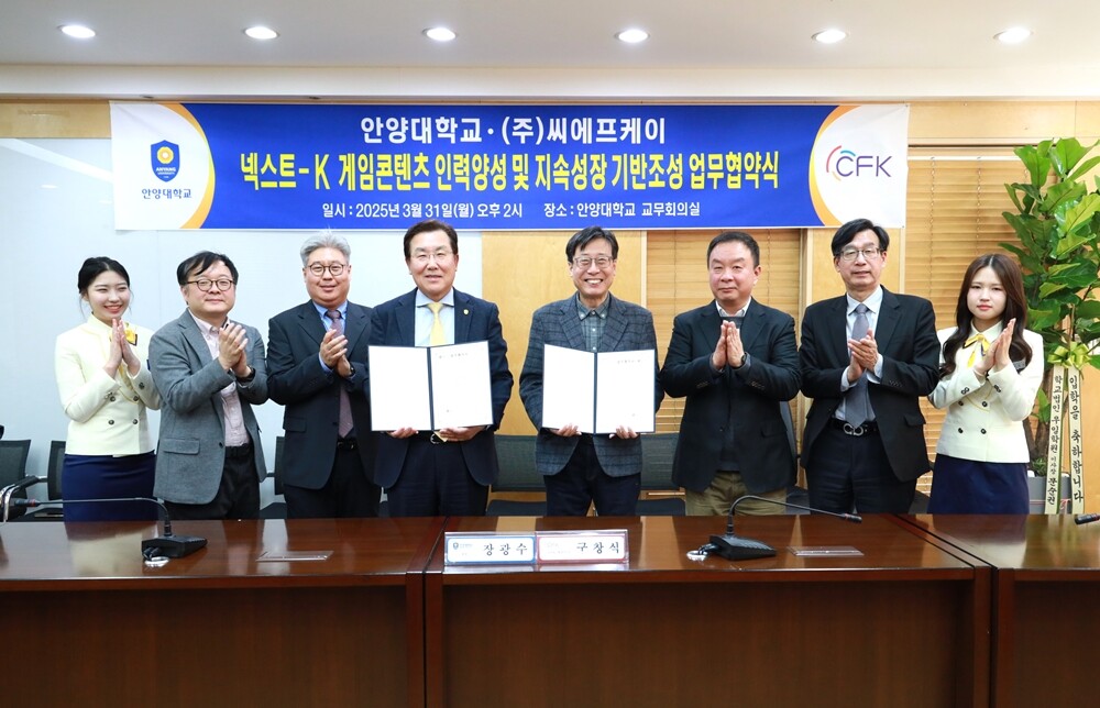 [대학저널 온종림 기자] 안양대학교와 글로벌 게임 퍼블리셔 ㈜씨에프케이가 게임콘텐츠 인력양성 및 지속성장 기반 조성을 위한 업무협약을 체결했다.