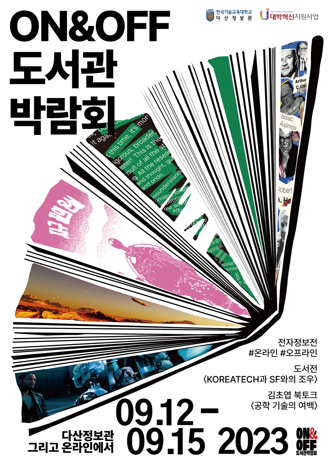 오프라인 박람회는 교내 다산정보관 로비에서 ‘SF연대기와 함께 살펴보는 테마 도서전’을 주제로 진행되며, 도서전(세계 SF연대기, 김초엽 작가 부스, 한국 SF연대기)과 참여존(참여작품 전시, 문학자판기), 포토존(박람회 조형물), 독서존(도서열람, 작품 만들기) 등 SF 도서 200여 종 전시를 통한 다양한 부스가 운영된다.