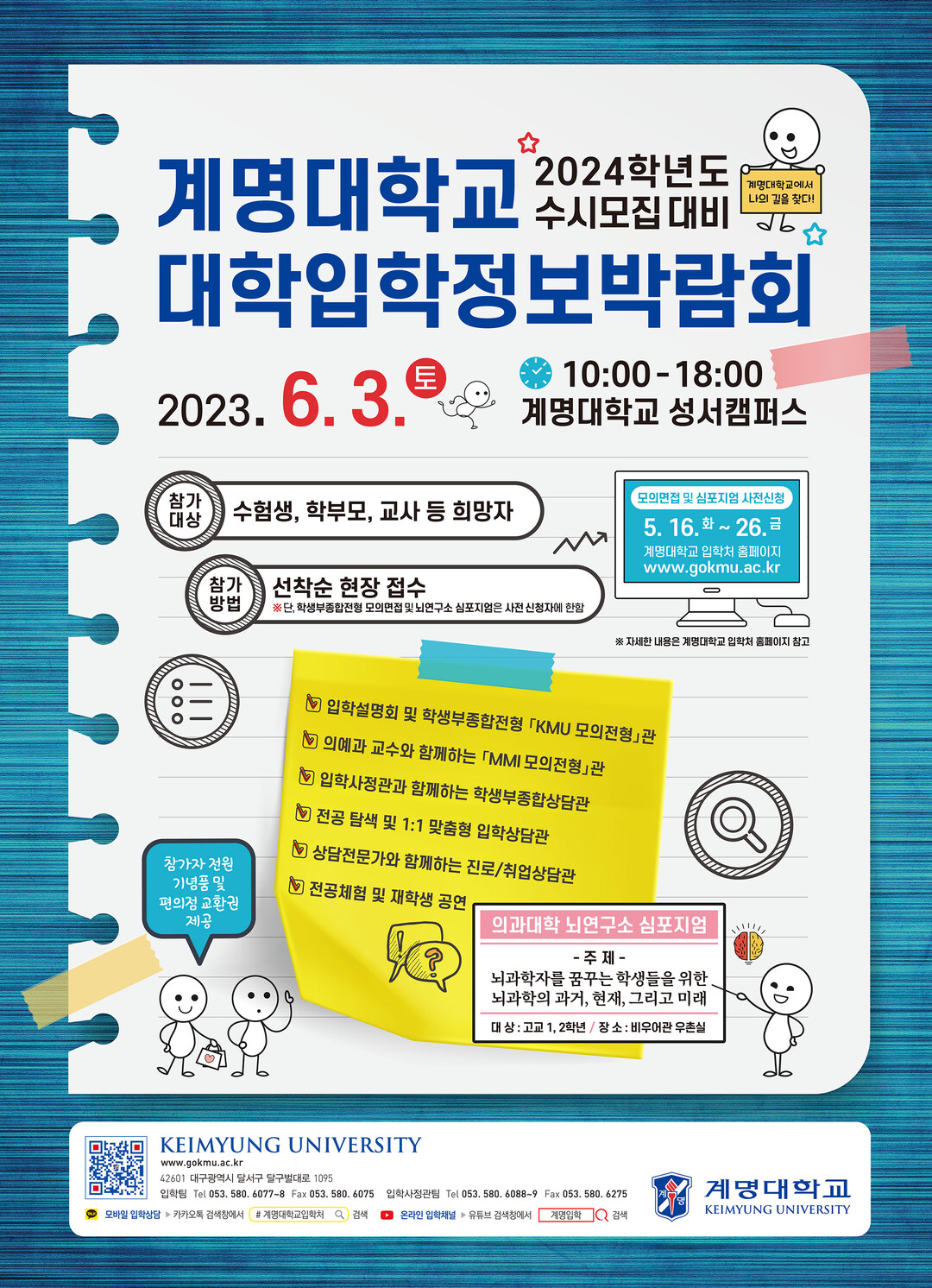 박람회와 입시에 관련된 문의사항은 계명대 입학팀과 입학처 홈페이지로 하면 된다.