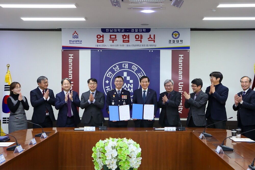 [대학저널 온종림 기자] 한남대학교와 경찰대학이 10일 한남대 본관 2층 대회의실에서 학술 및 행정 분야 교류 활성화를 위한 업무협약을 체결했다.