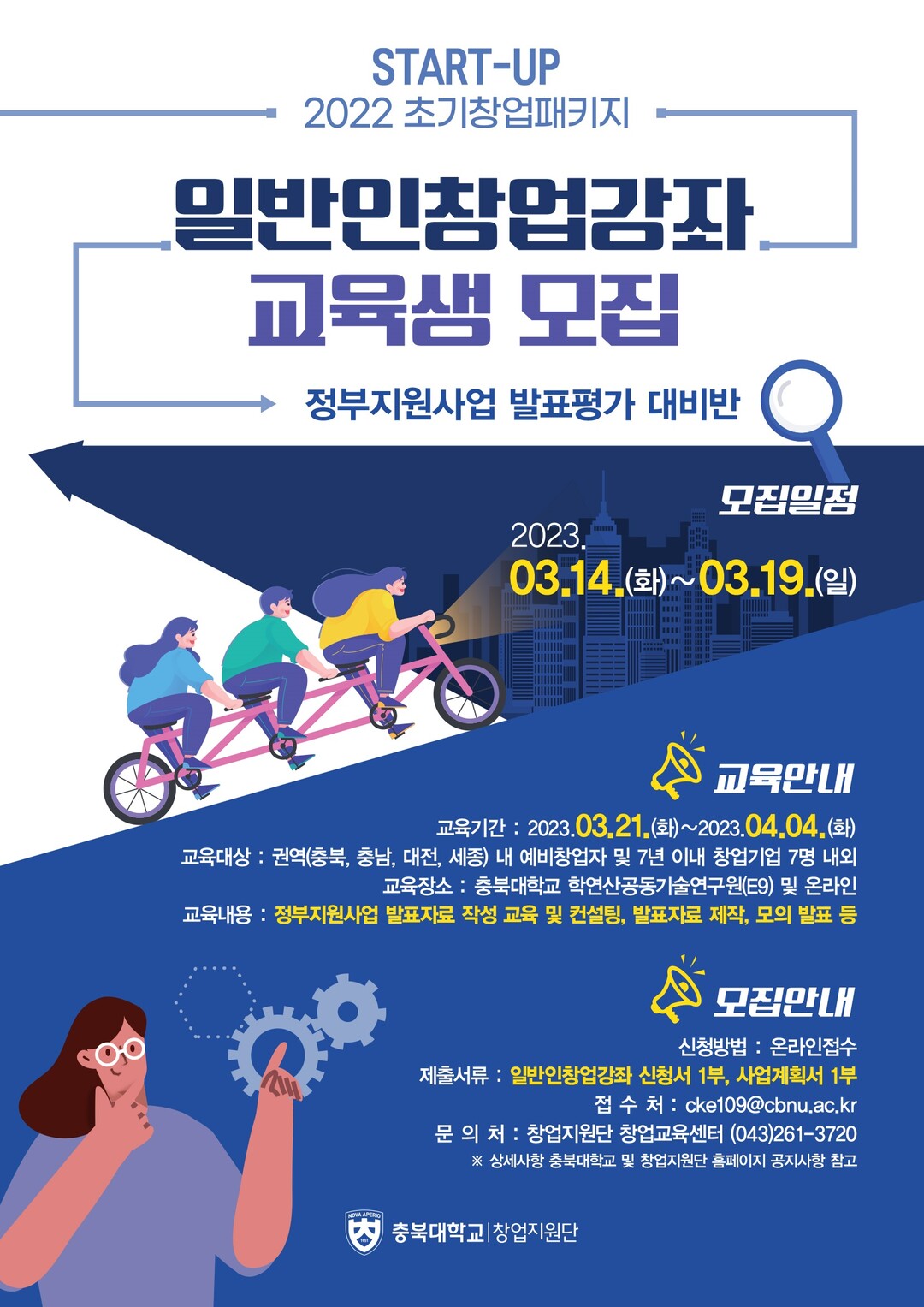 충북대 창업지원단은 오는 21일부터 4월 4일까지 제3차 ‘2022 일반인 창업강좌’를 운영한다.