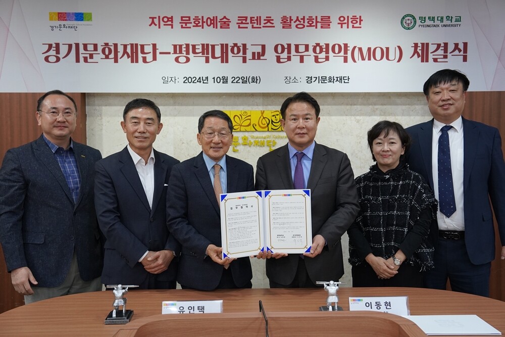 [대학저널 온종림 기자] 평택대학교가 22일 경기문화재단과 지역 내 문화예술 콘텐츠 확산을 위한 업무협약을 체결했다.