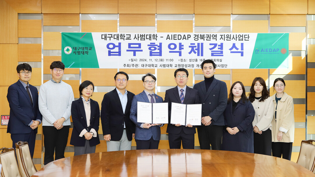 경북대 사범대학 AIEDAP 경북 권역 사업지원단 장정호 단장은 “교육 현장에 실질적인 도움이 되는 협력 방안을 지속적으로 논의하고, 이번 협약을 계기로 경북대 사범대학과 대구대 사범대학의 교류가 확대되기를 기원한다”고 밝혔다.