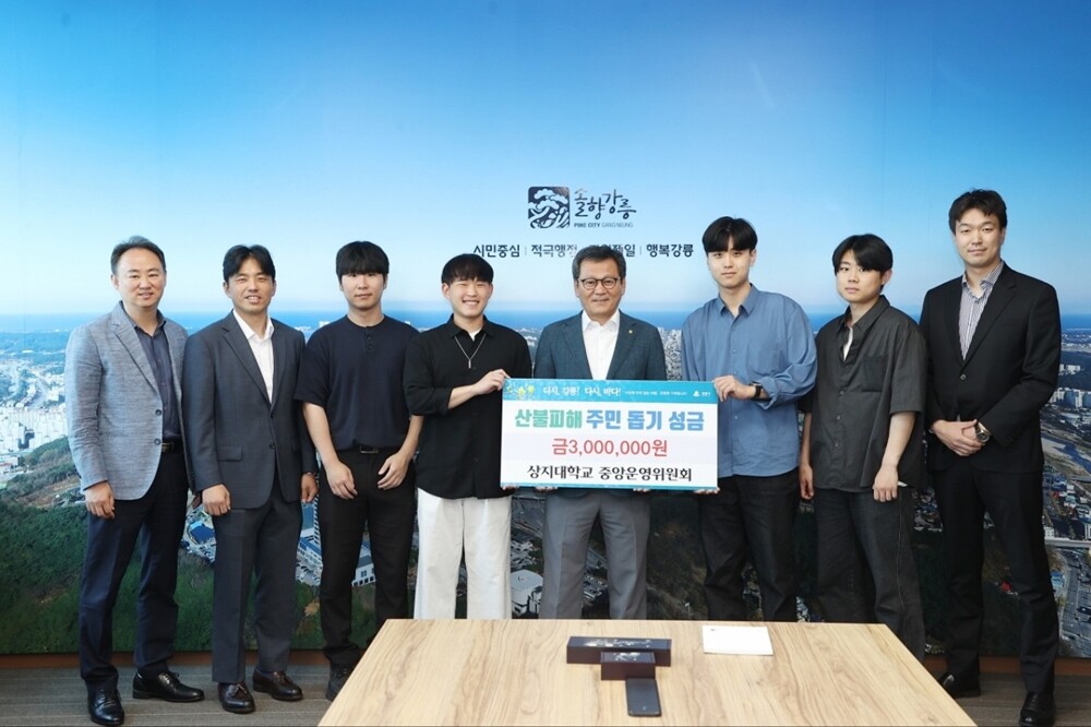 상지대는 16일 총학생회 중앙운영위원회가 강릉시청에서 산불 발생으로 어려움을 겪고 있는 이재민들을 위해 성금 300만원을 기부했다고 밝혔다.