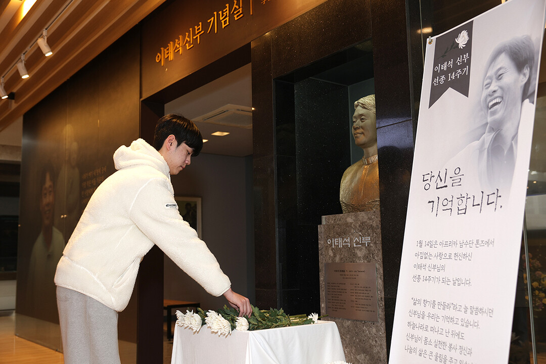 [대학저널 온종림 기자] 14일은 故 이태석 신부(인제의대 3회 졸업) 선종 14주기가 되는 날이다. 이 신부의 모교 인제대학교는 그의 숭고한 삶을 기억하고 추모하기 위해 15일까지 백인제기념도서관 로비에 위치한 이태석신부기념실에서 헌화의 시간을 갖는다.