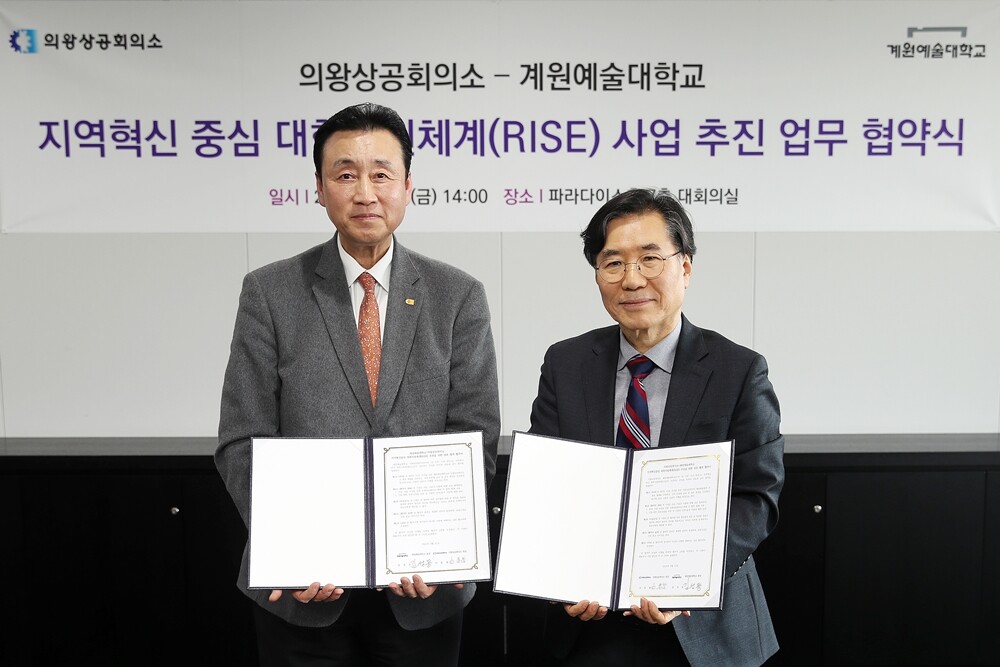 [대학저널 온종림 기자] 계원예술대학교가 21일 지역혁신 중심 대학지원체계(RISE)의 성공적인 추진을 위하여 의왕상공회의소와 상호 협력 업무 협약을 체결했다.