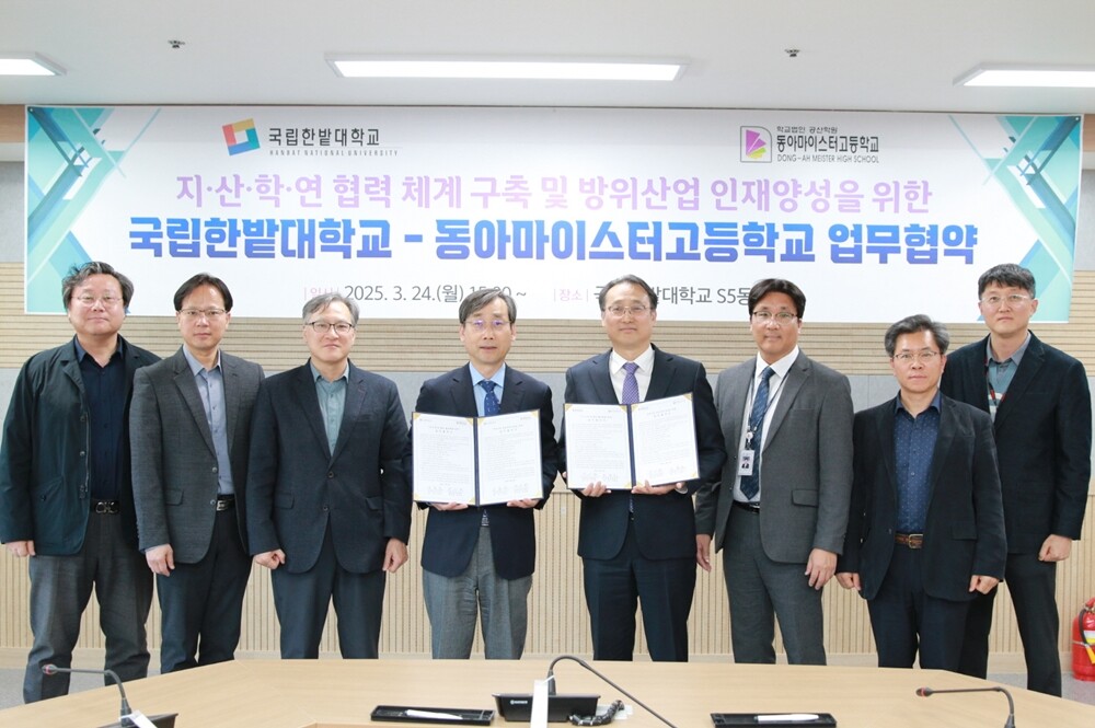 [대학저널 온종림 기자] 국립한밭대학교가 24일 교내 산학연협동관에서 동아마이스터고등학교와 ‘지·산·학·연 협력 체계 구축’ 및 ‘방위산업 전문인력 양성’을 위한 업무협약을 체결했다.