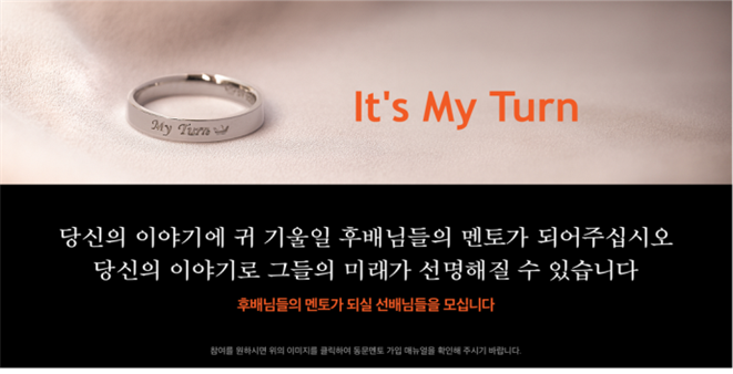 황선환 센터장은 “멘토링을 받고 취업에 성공한 후배(멘티)가 도움을 주는 선배(멘토)가 되는 선순환이 이 캠페인이 추구하는 바로, 캠페인 이름(It’s My Turn)처럼 언제든 내 차례가 될 수 있는 것이다. 먼저 현장에 뛰어든 선배들이 후배들의 든든한 길잡이가 돼주길 바란다”고 말했다.