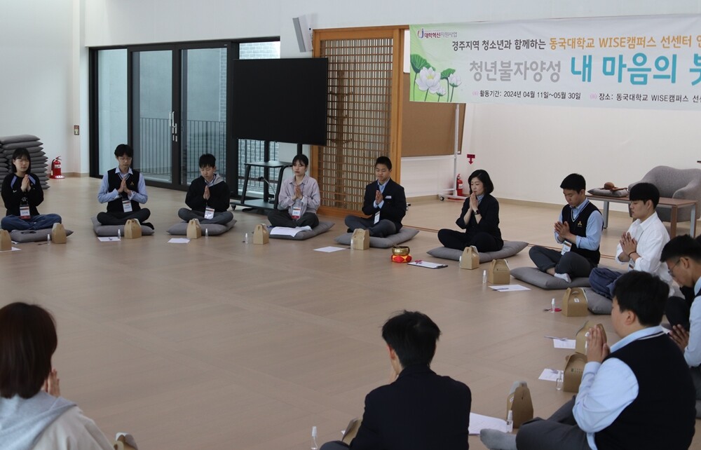 이번에 개최된 ‘내 마음에 붓-다’는 동국대 WISE캠퍼스 대학혁신지원사업의 일환으로 지역 연계 명상 프로그램으로 경주지역 사회 취약계층 청소년의 정서적 안정을 돕고, 생활의 지혜를 자신의 삶에 적용할 수 있도록 돕기 위해 마련된 불교기반의 인성 및 생활교육 실천 프로그램이다.
