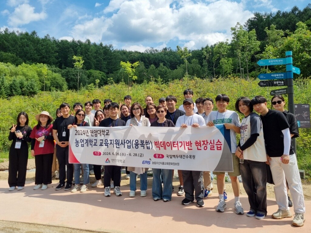 2024년 국립백두대간수목원 '종자연구 전문교육'에서 연암교 농업계학교 교육지원사업 참여 학생과 지도수가 함께 기념사진을 촬영하고 있다. 사진=연암대 제공 |
