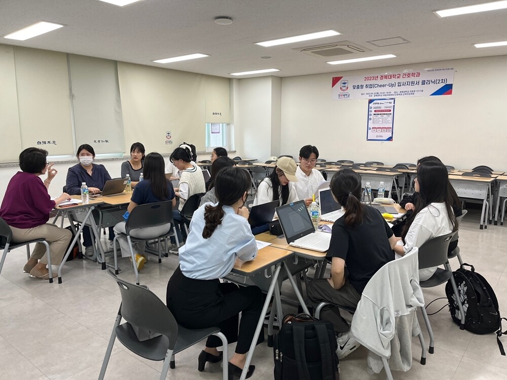 [대학저널 온종림 기자] 경복대학교는 간호학과가 최근 남양주캠퍼스에서 2024년 대형병원 취업을 대비해 제2차 맞춤형 취업(Cheer-Up) 입사지원서 클리닉을 실시했다고 25일 밝혔다.